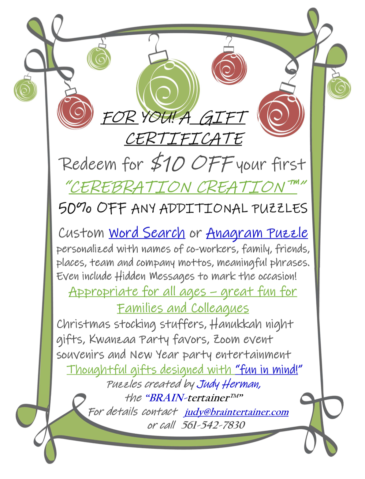 "It is my pleasure to write this letter of reference for Judy Herman's "All Aboard the Brain Train." Our residents always "got on board" for her class and I wish she resided closer so we could continue our relationship.